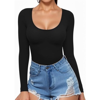 Womens Scoop Neck Short Sleeve Long Sleeve Slim Fit T Shirt Tunic Tops Tee