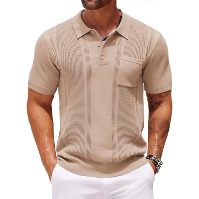 Knit Polo Shirts for Men Short Sleeve Textured Polo Shirt Slim Fit Summer Collared T Shirt with Pocket