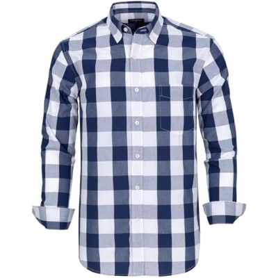 Men's Button Down Shirts Plaid Long Sleeve Dress Shirts Regular-Fit Casual Shirt