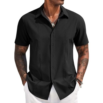 Mens Short Sleeve Cuban Guayabera Shirt Casual Summer Beach Button Down Shirts