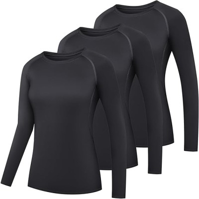 Women's Athletic Compression Long Sleeve Workout Tops Quick Dry Gym Running Yoga Shirts