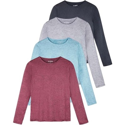 4 Pack: Women's Dry-Fit Tech Stretch Long-Sleeve Athletic Workout T-Shirt (Available in Plus Size)