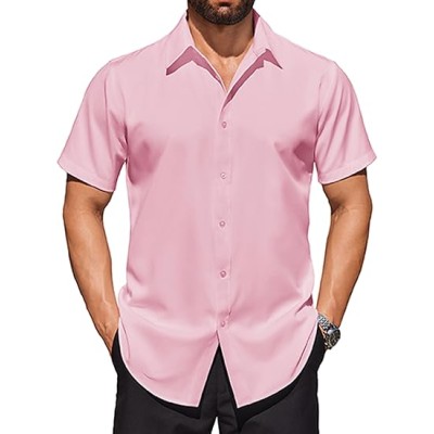 Mens Button Down Shirts Short Sleeve Casual Shirt Summer Beach Wedding Shirts