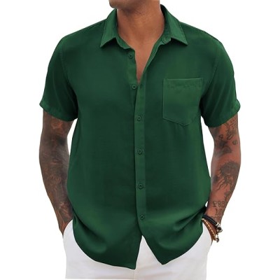 Mens Button Down Shirts Short Sleeve Casual Shirt Summer Untucked Dress Shirts
