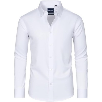 J.VER Men's Dress Shirts Solid Long Sleeve Stretch Wrinkle-Free Formal Shirt Business Casual Button Down Shirts