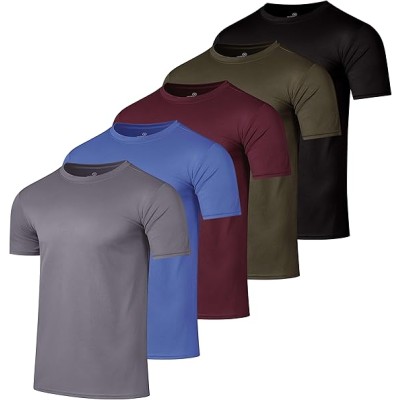 5 Pack Men’s Active Quick Dry Mesh Crew Neck T Shirts | Athletic Short Sleeve Tee (Available in Big & Tall)