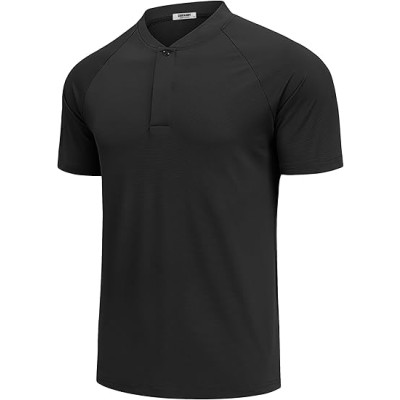 Men's Quick Dry Golf Polo Shirts Short Sleeve Henley Shirt Active Athletic Collarless Sports T Shirts