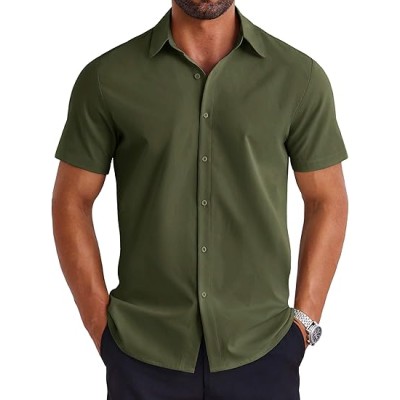 Mens Short Sleeve Dress Shirts Regular Fit Stretch Wrinkle-Resistant Button Down Shirts