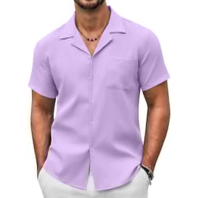 Men's Casual Button Down Shirts Short Sleeve Summer Beach Shirt Fashion Textured Shirts with Pocket