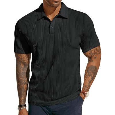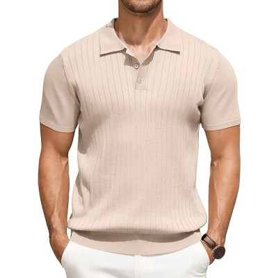 Men's Knit Polo Shirts Short Sleeve Ribbed Knitted Shirt Summer Lightweight Casual Golf Shirts