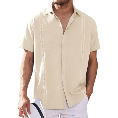Mens Short Sleeve Cuban Guayabera Shirt Casual Summer Beach Button Down Shirts