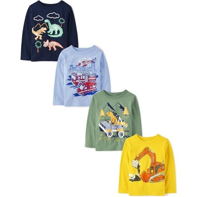 Baby Boys' and Toddler Assorted Everyday Long Sleeve Graphic T-Shirts,multipacks