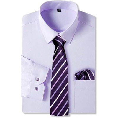 Mens Long Sleeve Dress Shirt and Tie Set Suit Shirt with Matching Tie and Handkerchief