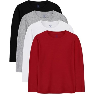 4 Pack Boys Long Sleeve Shirts Soft Cotton Basic Tees Youth Boys Long Sleeve T-Shirts Layering Shirts Tagless